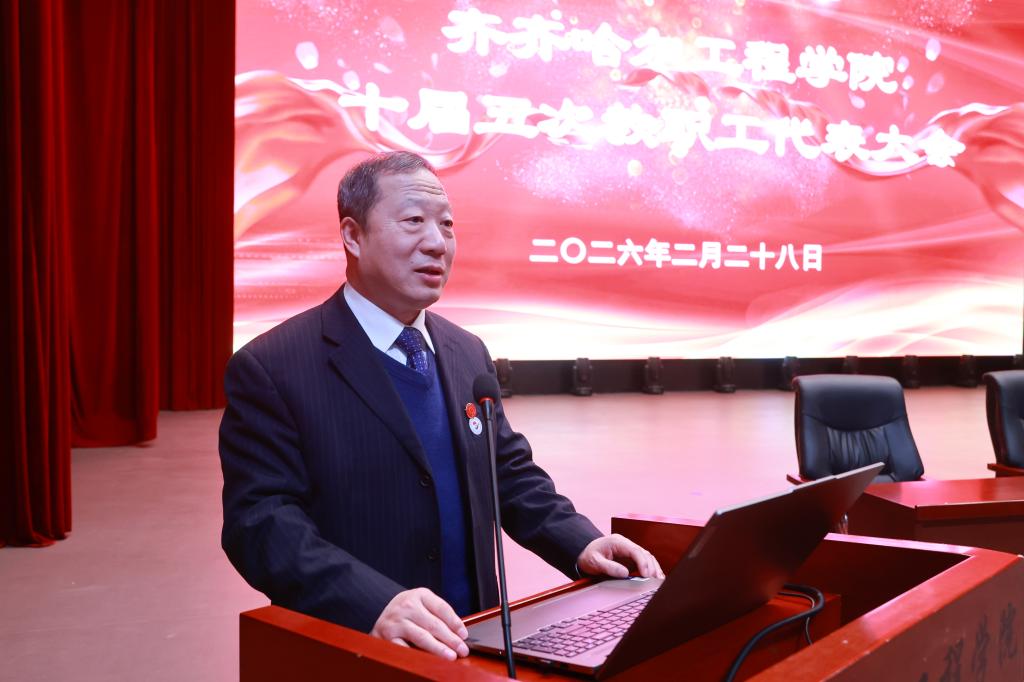 学校党委书记郭伟东致大会闭幕词。他指出,全体代表以高度的责任感和使命感,紧扣学校高质量发展核心任务积极建言献策、深入研讨交流,充分彰显了民主治校、团结奋进的优良校风。他对全体教职工提出三点要求:一是要坚守初心使命,牢记立德树人根本任务;二是要厚植师德,潜心立德树人,践行生涯导师制,用心关爱学生成长;三是要勇于创新,深化内涵发展,以实干实绩夯实学校发展根基。
