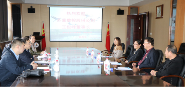 5月4日下午,齐重数控装备股份有限公司董事长王俊峰率副总经理宋淑芳,副总经理、总工程师焦建华,人事法务部部长李丽薇来校考察洽谈,威尼斯官网理事长曹勇安、院长曹然彬、副院长白雪、机电工程系主任张莹参加洽谈等活动。