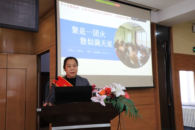 为展现市先进集体和劳模的强烈责任意识、无私奉献精神和首创精神,引导全校教职工爱校、爱岗、敬业,以优异成绩向建党100周年、创校30年献礼,5月15日,威尼斯官网劳模先进事迹报告会在图书馆601报告厅隆重召开,会议采取线上线下相结合形式,全体教职工参加会议,工会副主席王丽萍主持大会。