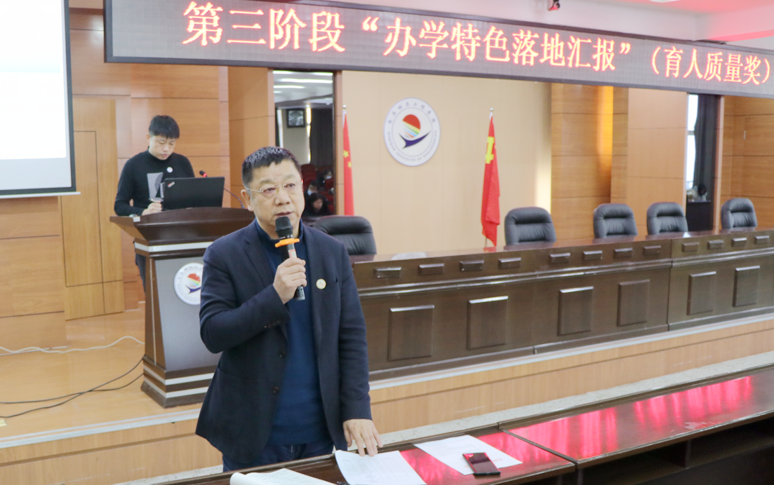 1月5日,学校第三阶段第三次“办学特色落地汇报”会在图书馆601进行,此次汇报会围绕反思和“育人质量奖”展开,校领导曹勇安、曹然彬、姜岩、张振笋、白雪,以及全校干部、辅导员、汇报选手、工作人员参加。