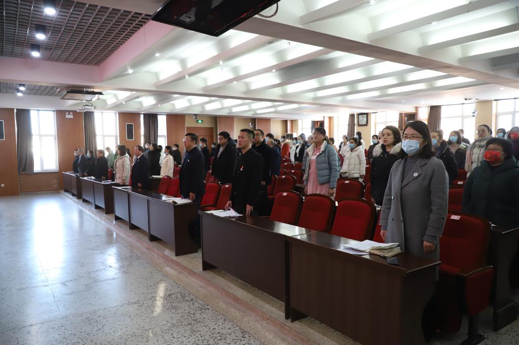 副院长白雪宣读大会决议。决议指出,学校工作报告全面总结了学校2021年的各项工作和所取得的突出成绩,提出了学校2022年工作思路,并从六个方面对学校2022年工作重点作了整体部署。报告主题鲜明、思路清晰、任务明确、重点突出,对于推进学校高质量发展具有重要意义。全体教职工要不忘教育初心,牢记育人使命,以学生为中心,落实“三·三”办学特色,聚焦课程建设,立足当前,着眼未来,以昂扬的斗志和饱满的热情投入到学校高质量发展的宏伟事业中!