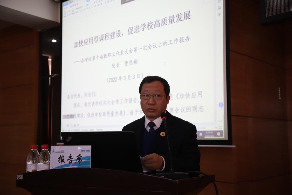 会议听取了曹然彬院长所作的题为《加快应用型课程建设,促进学校高质量发展》的学校工作报告。报告指出,2021年是学校创业而立之年。学校统筹推进疫情防控和事业发展,在基于实践的反思中持续推进应用型课程建设,用实干实现了学校“十四五”良好开局。学校首创了具有中国特色的“四真三化”(FT)课程建设模式,解决了急难愁盼的高等教育转型发展中课程落地的“卡脖子”问题,向国家提供了齐工程解决方案,向世界贡献了具有中国特色的课程建设解决方案。报告全面回顾了学校2021年在课程建设特色、深化教学改革、践行以学生为中心、推进评估整改等方面所取得的成绩。报告强调,面对中国教育进入全面提质创新的高质量发展新时代,全体教职工要以课立校、以课发展,聚焦重点、精准发力,全面推动全校师生对“FT课程”建设模式的理解、运用,集全校力量和联盟力量靶向这个目标,向更大范围推动普及。