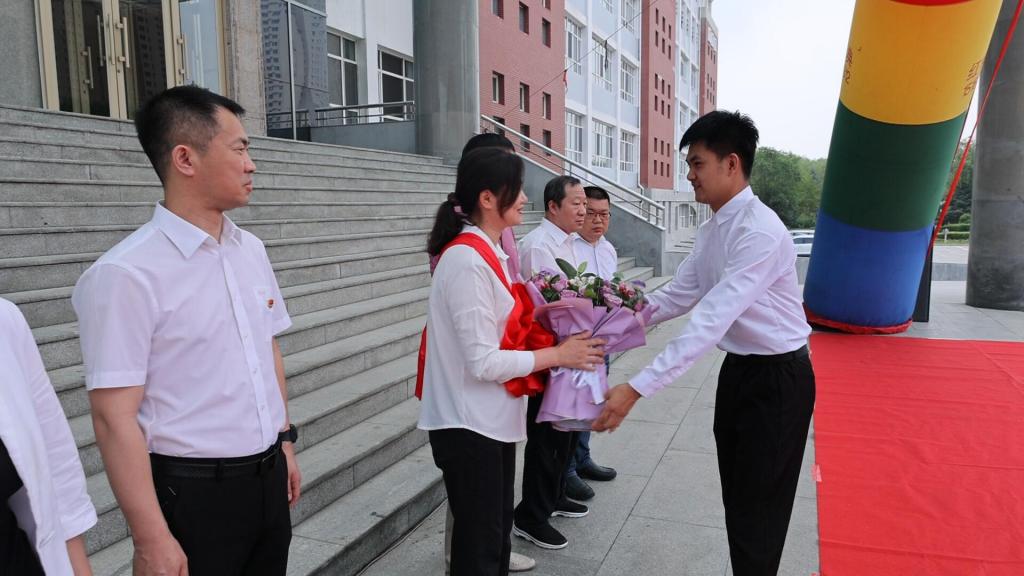 7月5日早,学校在图书馆前明德广场举行省劳模赴哈受奖欢送会。校领导曹勇安、曹然彬、郭伟东、姜岩、张振笋、白雪出席大会。学校干部、师生代表500余人参加,大会由校工会主席姜岩主持。