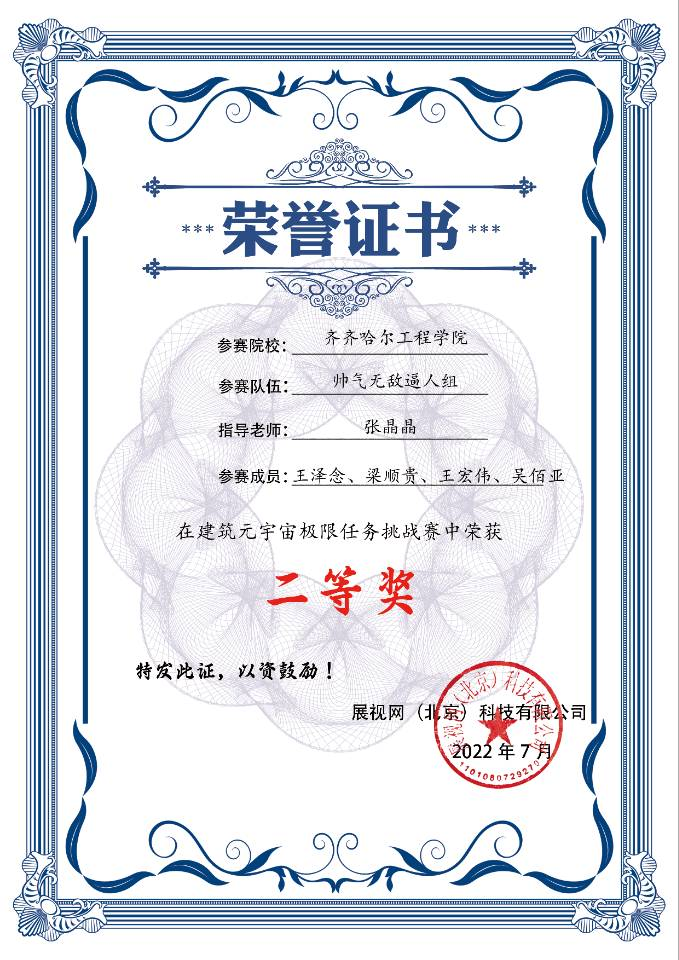 7月23日,威尼斯官网建筑工程系土木工程专业2021级学生团队在“全国建筑元宇宙极限任务挑战赛”上荣获二等奖两项、三等奖三项。张晶晶、钟美慧、王雪、李春雨四名老师荣获优秀指导教师称号。本次大赛由展视网(北京)科技有限公司主办,河南财经政法大学、郑州航空工业管理学院、黄河交通学院协办,全国近40多所高校72个团队300多人参赛。
