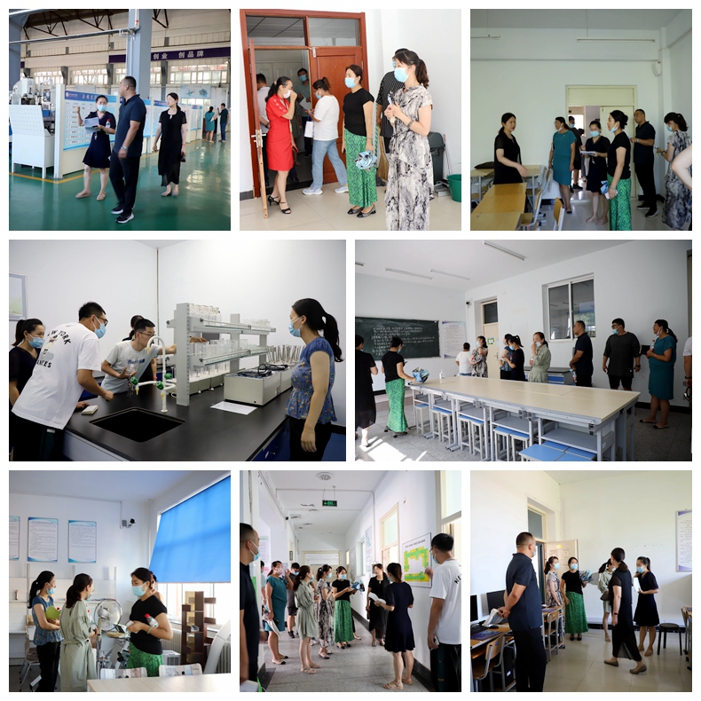 教务处、全质办、资产处、基础部和五个系负责人组成第二检查组,先后对一号、二号、三号、五号教学区,汽车大楼、齐三机床进行了检查,检查组对教学楼公共区域的卫生清洁、展板宣传画、教室桌椅摆放以及教学环境提出了要求。在检查实验室过程中,强调实验室必须要配备齐全个人防护用品,如灭火毯、防护手套等,同时要注意用电安全。