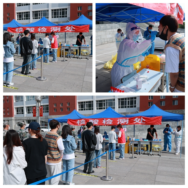进入校园后,在图书馆明德广场,新生有序排队进行落地核酸检测。