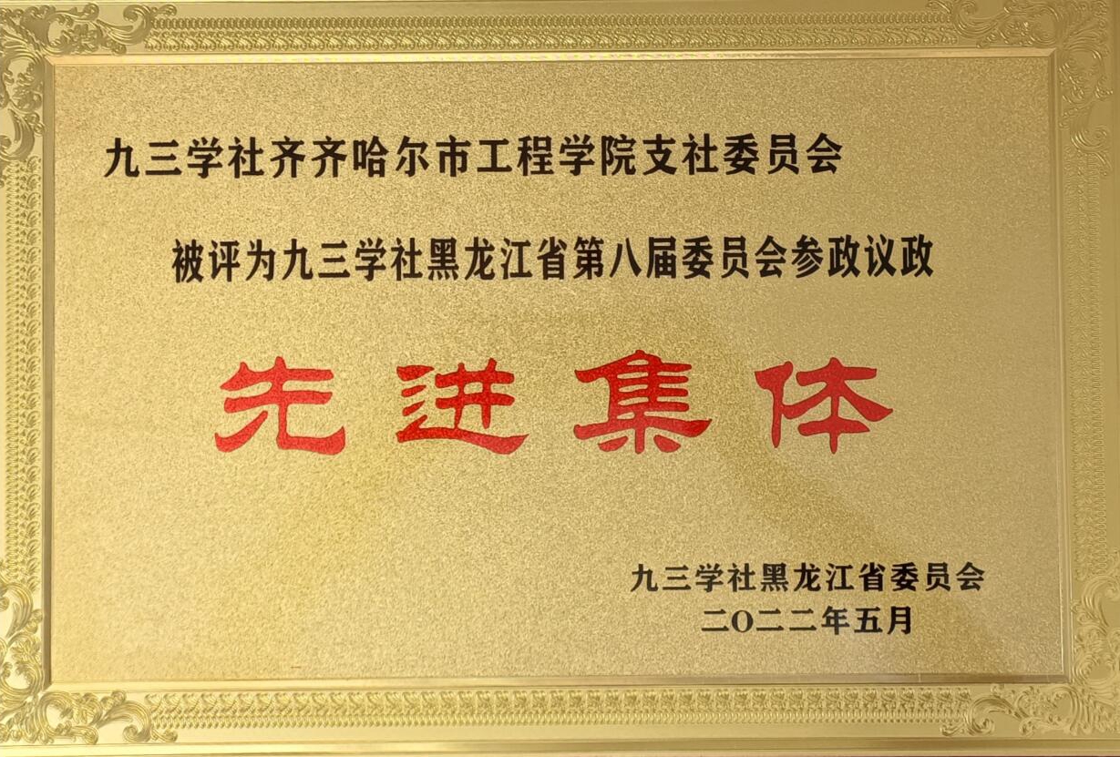 九三学社威尼斯84881支社委员会被评为“九三学社黑龙江省第八届委员会参政议政先进集体”。
