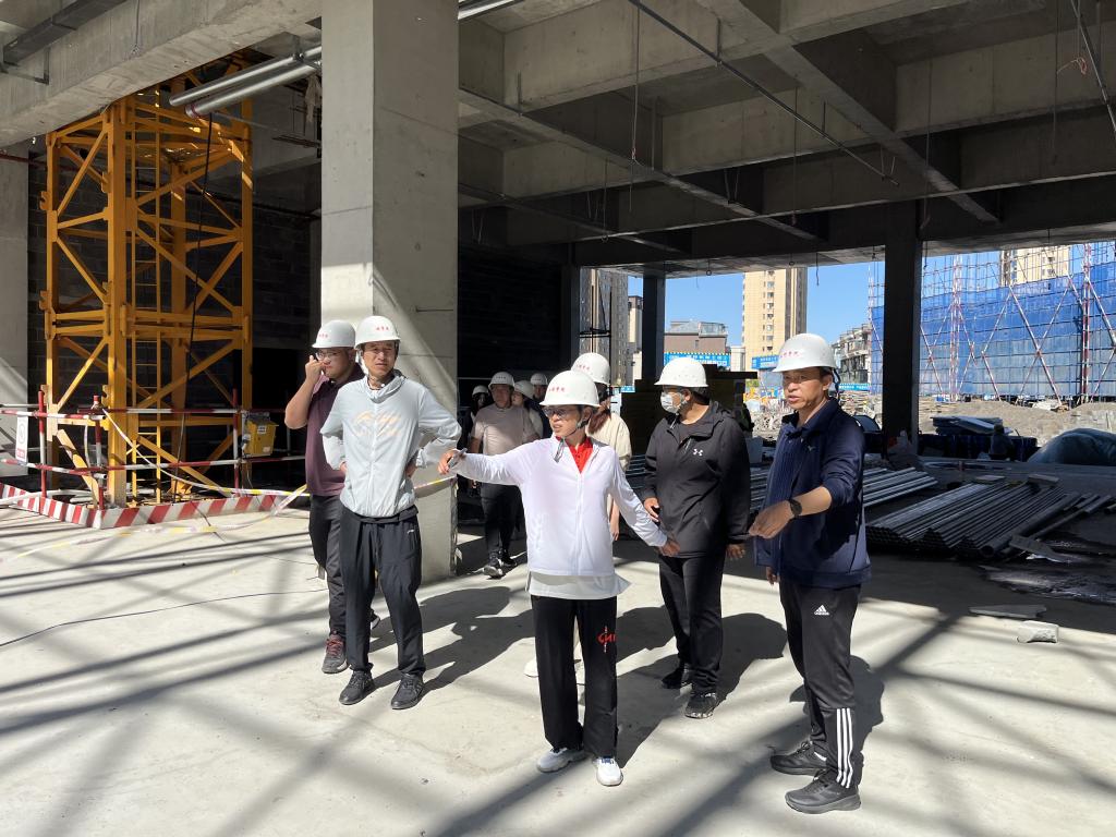 教师们实地考察了游泳馆、体育馆、冰上运动馆、人民会堂等文体场馆。美育教研室课程长高士涵十分关注人民会堂工程的建设进展情况,对施工进度和竣工时间进行了了解。