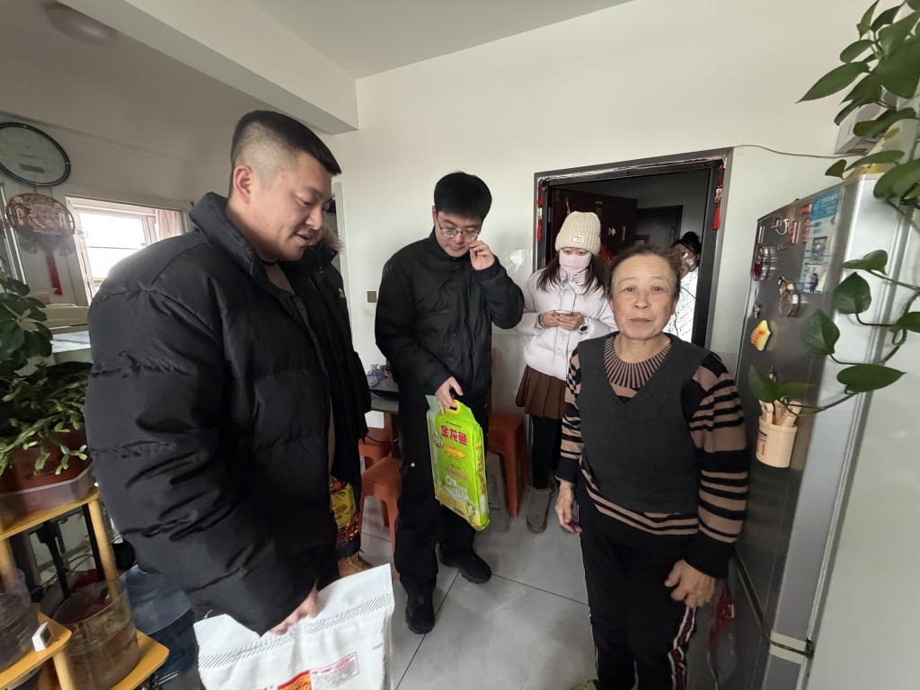 凛冬时节,寒意渐浓,却挡不住送温暖的脚步。活动现场,校团委书记高士涵、团委教师张云惠、学工处教师高景阳一行带着精心筹备的米面粮油等生活物资,深入新鹤城社区困难群众家中。每到一户,慰问组都与居民亲切交流,促膝长谈,详细询问他们的生活起居、身体状况和家庭近况,耐心倾听诉求,认真了解他们在生活中遇到的实际困难。针对大家提出的困难与需求,慰问组认真记录,并积极对接社区探讨帮扶思路。一句句暖心的叮嘱、一声声真挚的关怀,如冬日暖阳般驱散了寒意,让特殊群体在这个寒冷的季节里,深切感受到了来自高校共青团的浓浓温情。
