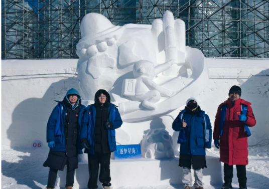 信息学院与艺术与体育学院则携手推进实践工作,1454名学生组成366个实践小组,在96名生涯导师与10名辅导员的指导下有序开展活动。截至目前,两学院累计推送宣传报道421篇,263人次完成企业调研,489人次书写未来规划,404人次参与志愿服务,387人次回访母校。其中,艺术与体育学院师生组队亮相黑龙江省第二届冰雕雪雕职业技能大赛,辛明明老师指导3名冰雪雕塑微专业学生,以雪为媒创作兼具创意与美感的作品,将专业技能与地域文化深度融合,展现了齐工程学子的专业素养与创新能力。