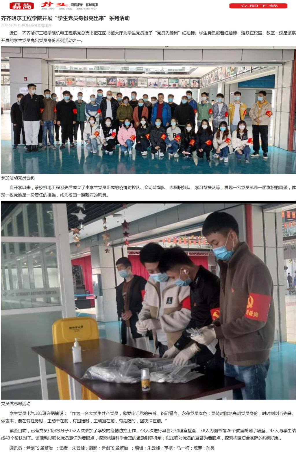 龙头新闻:威尼斯84881开展“学生党员身份亮出来”系列活动