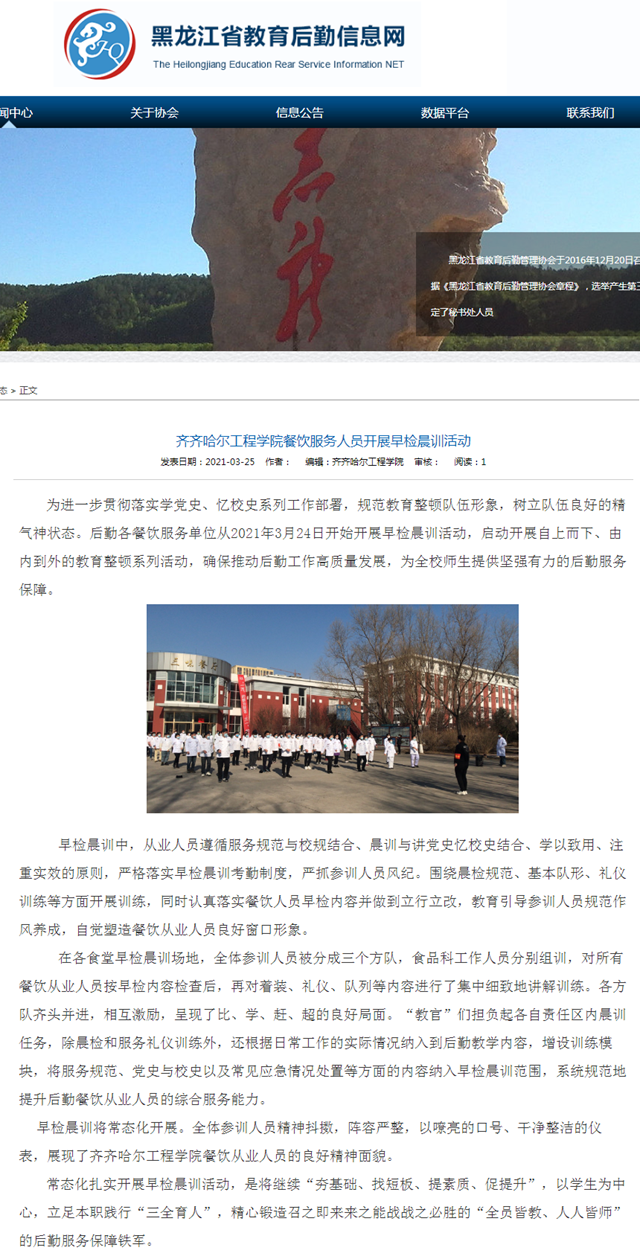 黑龙江省教育后勤信息网:威尼斯84881餐饮服务人员开展早检晨训活动