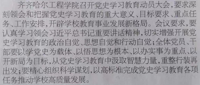 齐齐哈尔日报《奋斗百年路 启航新征程》栏目报道学校开展党史学习教育消息