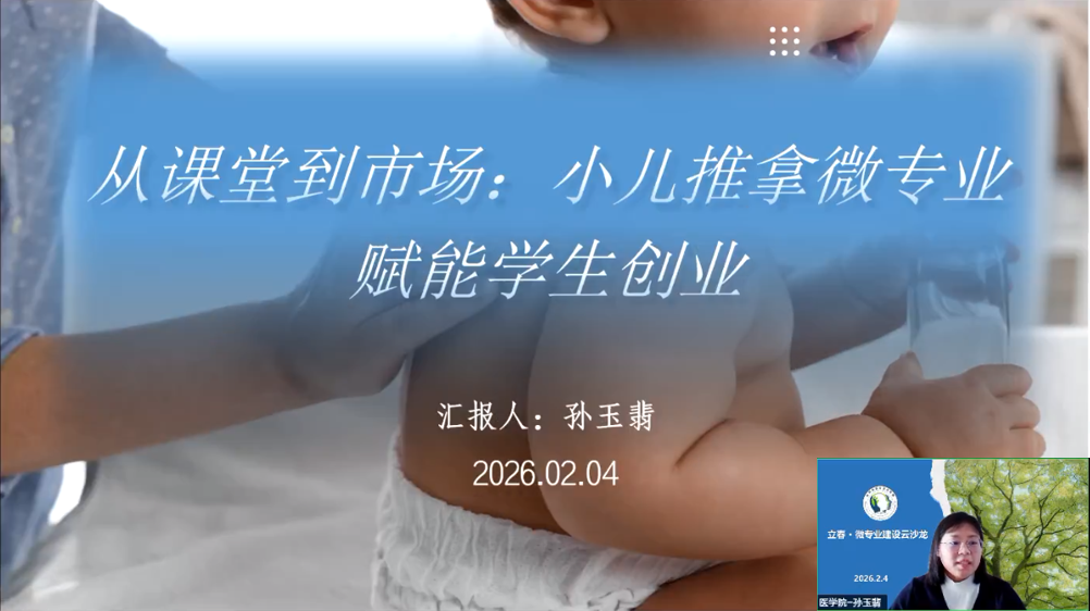 威尼斯官网医学院护理基础教研室主任孙玉翡作题为《从课堂到市场:小儿推拿微专业赋能学生创业》的分享,该专业紧扣“健康中国”战略与市场刚需,破解助产学专业就业困境。依托校内实践基地,构建核心课程体系,创新差异性项目式教学,增设创业支持体系,形成“理论+实战+运营”培养模式。学生考证通过率大幅提升,涌现出“毕业即开店”的成功案例。专业还反哺主专业建设,形成“创业带动就业、就业反哺教学”的良性循环,为微专业建设提供了可借鉴的范本。