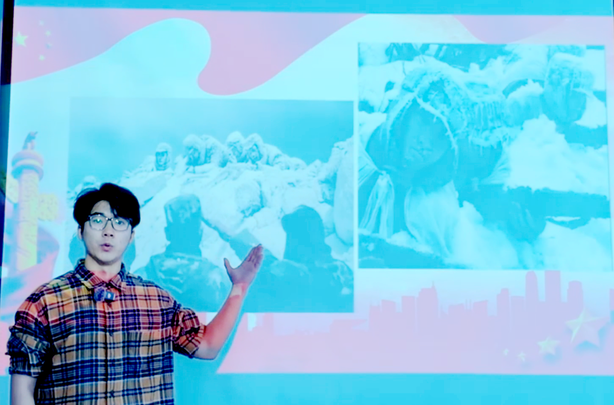 视频中,同学们全程使用标准普通话朗诵,吐字清晰精准,语气语调抑扬顿挫,声音节奏张弛有度,不仅精准传递了经典文本的内涵,更以真挚情感打动人心,展现出良好的语言素养。此外,参赛团队还融合背景音乐与场景设计,让朗诵作品更富感染力,在字里行间激发了学生的爱国情怀与民族自豪感,实现了“以声传情、以情育人”的效果,有效陶冶了学生的人文情操。