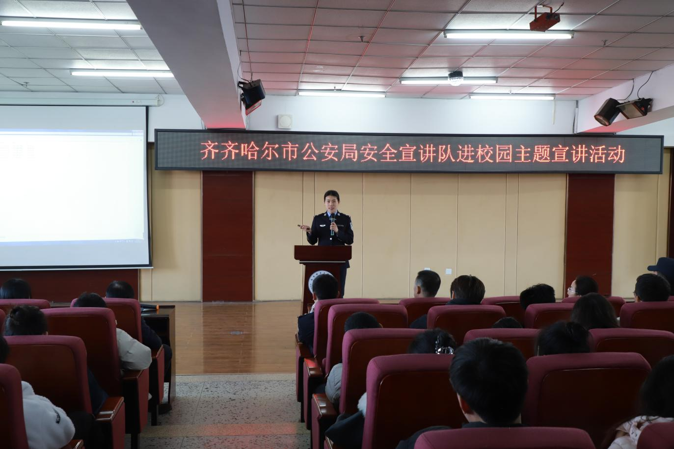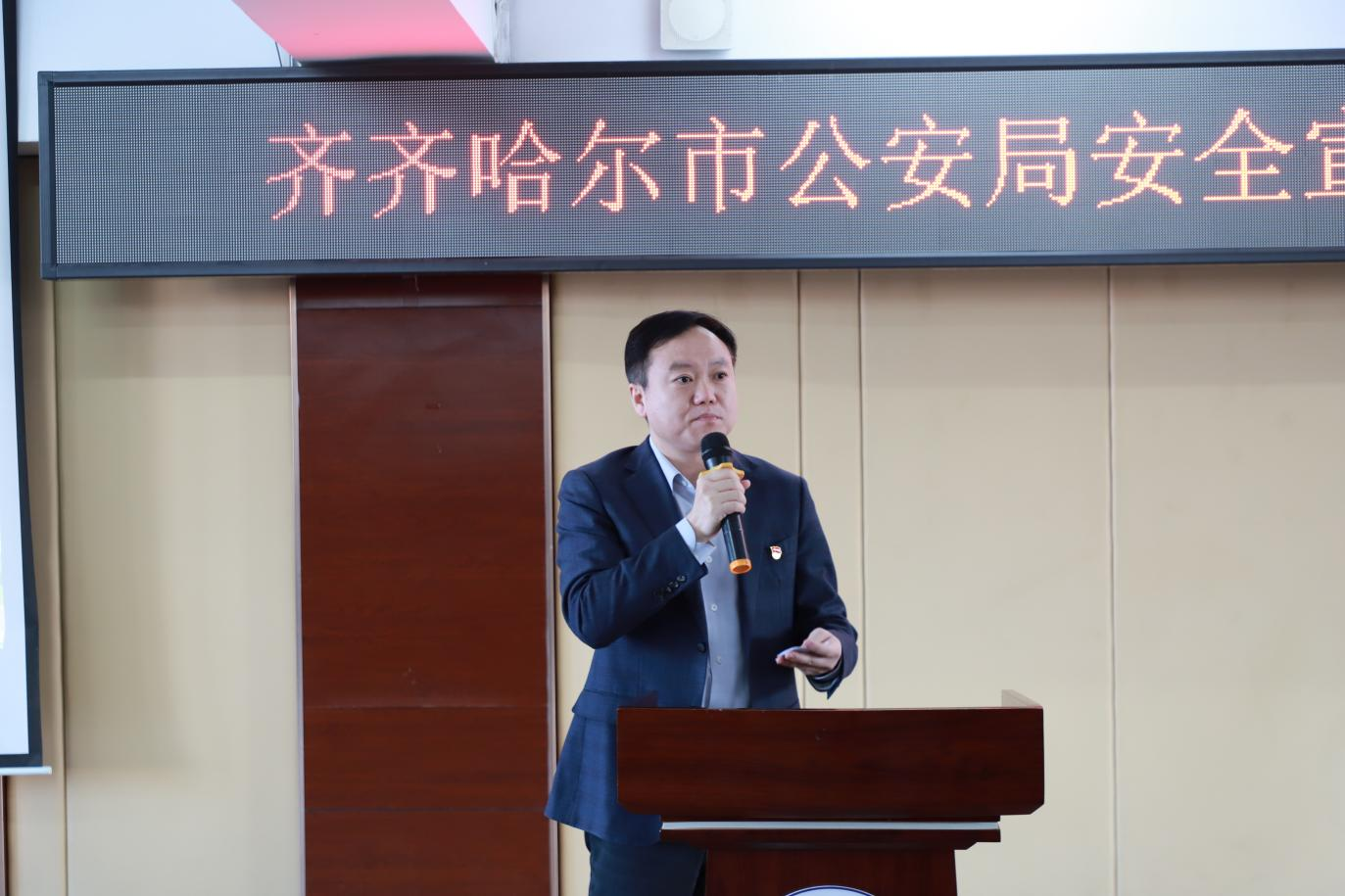 3月4日下午,学校邀请齐齐哈尔市公安局政保支队文保大队大队长李铁军、新闻宣传科科长侯巍、新闻宣传科宣传部主任姚磊等安全宣讲队成员一行7人进校园开展安全主题宣讲活动。学校保卫处和学生工作处管理人员及学生管理骨干等300余名师生参与,活动由保卫处处长成超主持。
