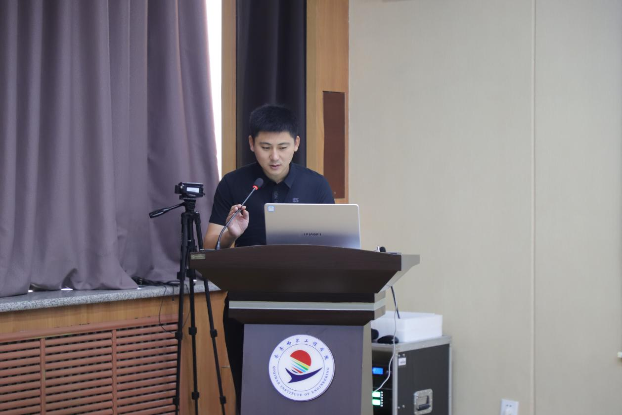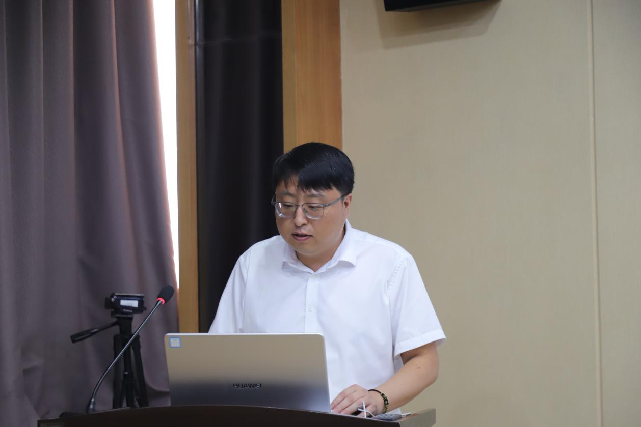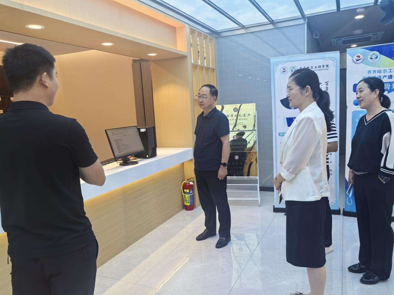 调研组在图书馆603南会议室听取医学院院长孙强、土木与管理学院副院长于骁晗关于齐齐哈尔市BIM匠造工匠学院、齐齐哈尔市大健康工匠学院建设情况的工作汇报。