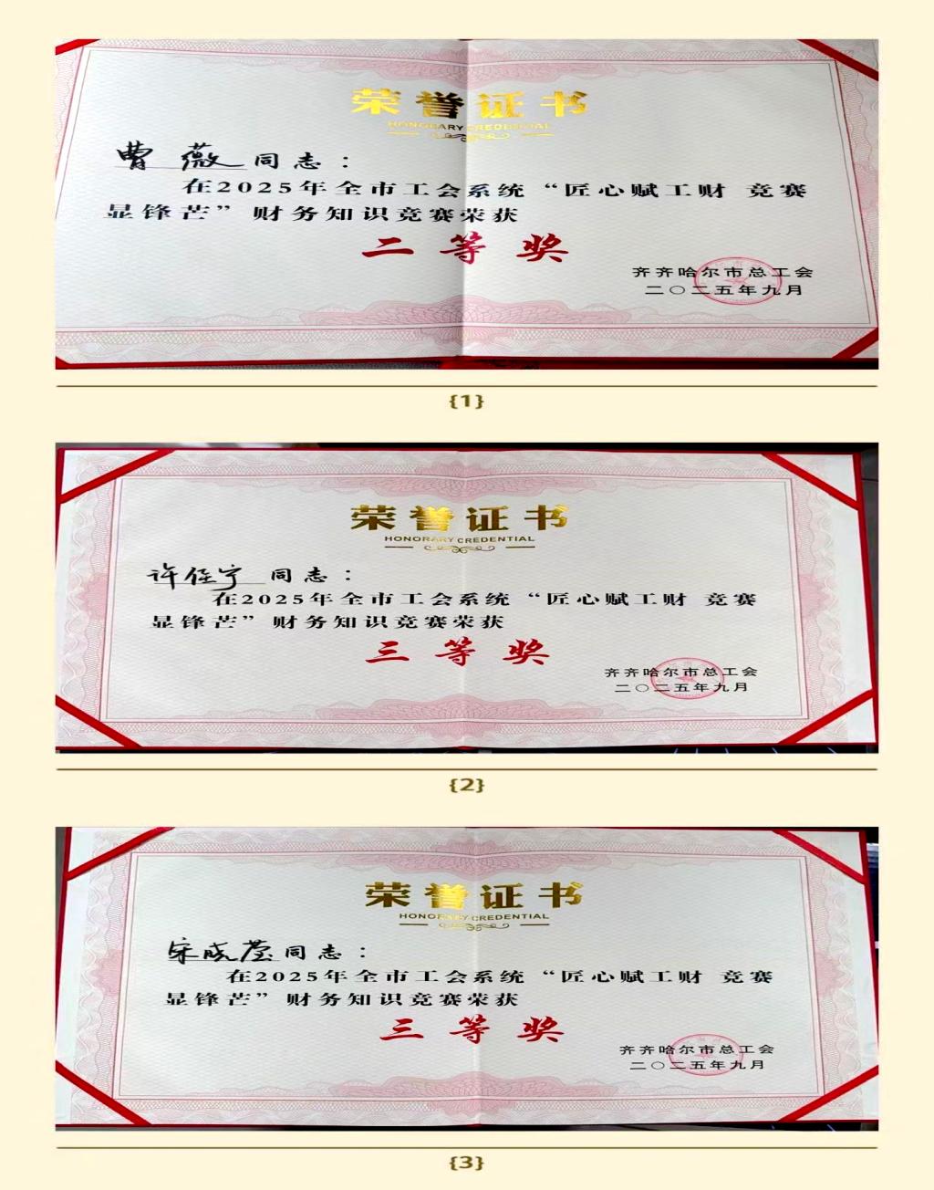 9月15日,由齐齐哈尔市总工会主办的“匠心赋工财 竞赛显锋芒”全市工会财务知识竞赛在市工人文化宫成功举办。威尼斯官网土木与管理学院和财务处共选派9名教师代表参赛,他们在比赛中发挥出色,最终荣获多项个人与团体奖项。