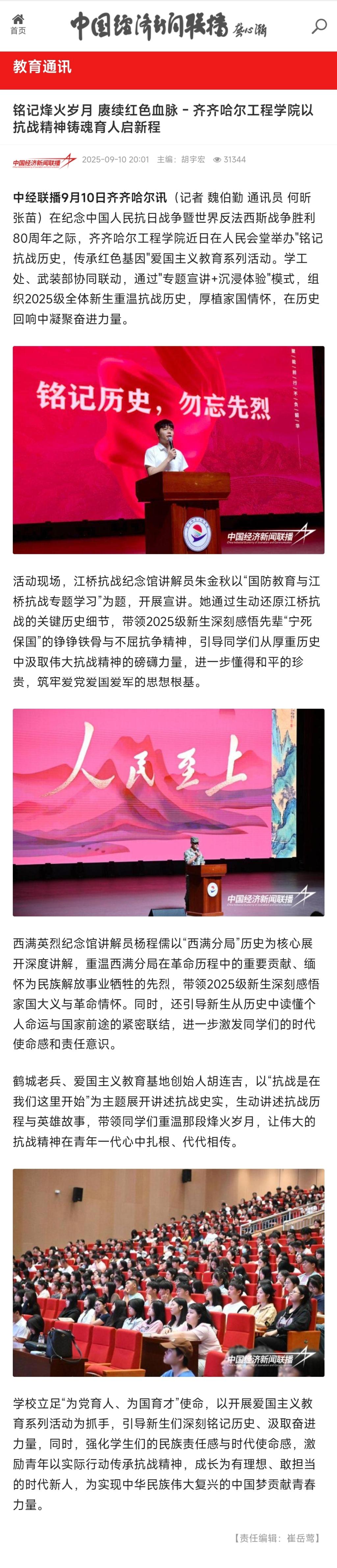 《中国经济新闻联播》铭记烽火岁月 赓续红色血脉-威尼斯84881以抗战精神铸魂育人启新程