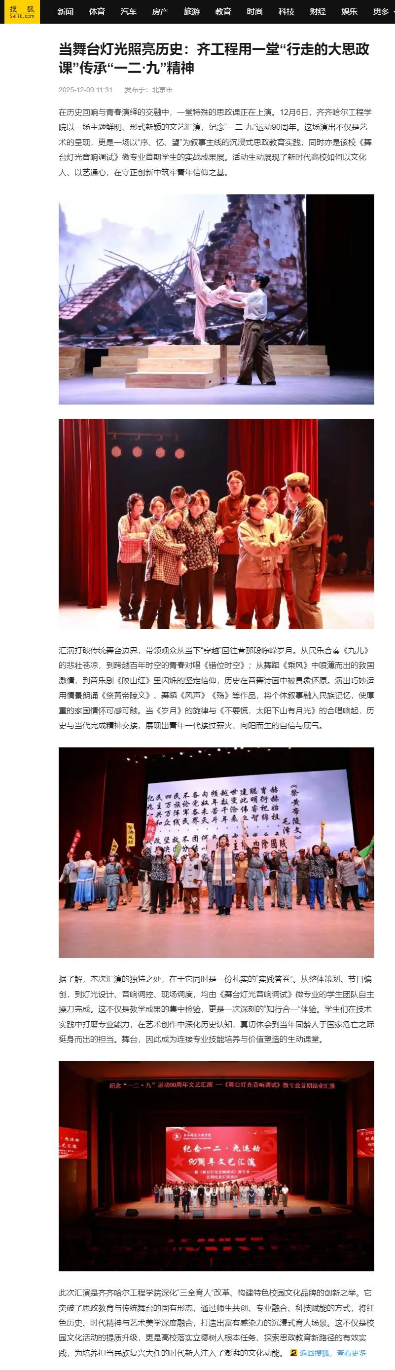《搜狐网》当舞台灯光照亮历史:齐工程用一堂“行走的大思政课”传承“一二·九”精神
