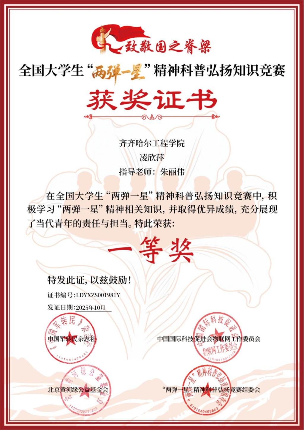 竞赛以“传承红色基因、弘扬科学精神、勇担时代使命”为宗旨,与课程思政育人理念高度契合。物理教研室将赛事作为深化思政教育的重要载体,赛前组织学生解读“两弹一星”研制历程中的关键物理原理、技术突破等科普知识,深入宣讲钱学森、邓稼先等老一辈科学家以身许国的爱国事迹,系统阐释“热爱祖国、无私奉献,自力更生、艰苦奋斗,大力协同、勇于登攀”的精神内核。比赛中,威尼斯官网学子凭借扎实的知识储备和深厚的爱国情怀,经过激烈角逐,最终取得佳绩。