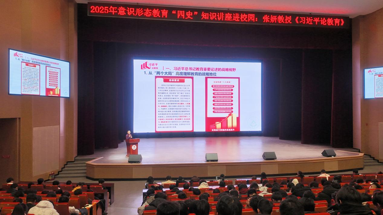 11月28日下午,学校在人民会堂举办专题讲座。邀请东北林业大学马克思主义学院副院长张妍担任主讲人,全校近千名师生代表现场聆听,共同感受思想伟力、凝聚育人共识。此次讲座也是省教科文卫体工会关于开展2025年开展意识形态教育“四史”知识讲座进校园活动的一项。讲座中,张妍以“内容体系与重大意义”等为主线,系统阐释了习近平总书记论教育重要论述的核心要义。指出,论述立足中华民族伟大复兴全局和世界百年未有之大变...